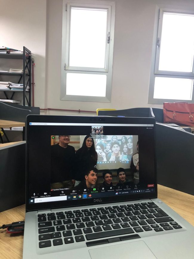 Την Τρίτη 12 Μαρτίου 2023 την πέμπτη και την έκτη ώρα πραγματοποιήσαμε διαδικτυακή συνάντηση με ομάδα καθηγητών και μαθητών του σχολείου Altindag Anatolian High School της Σμύρνης, με το οποίο συνεργαζόμαστε. Στο πλαίσιο αυτής της συνάντησης ομάδα μαθητών και μαθητριών της Β΄ και της Γ΄ τάξης παρουσίασε τις εργασίες της με θέμα «Τα Οθωμανικά μνημεία…