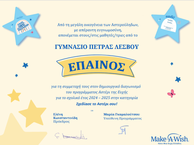 Έπαινος από τη συμμετοχή του σχολείου μας σε δράση του make a wish
